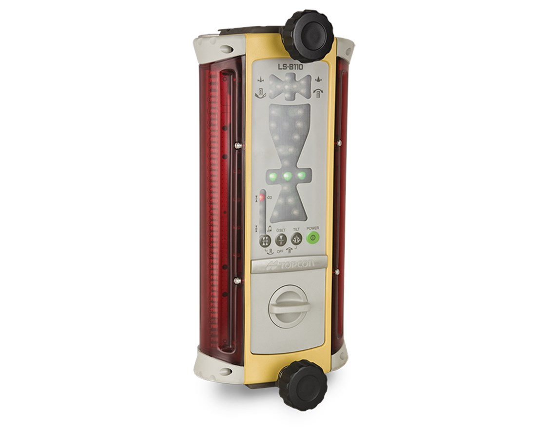 Topcon's machine laser receivers and remote displays are value-priced grade control solutions for indicate and machine control automatic capability for dozers, scrapers, excavators, backhoes, and drag-boxes.All LS-B100 / LS-B110 receivers feature simple, secure mechanical mounting, 360u00b0 beam detection, adjustable on-grade accuracy, alkaline or rechargeable battery operation, water and dust proof cast construction, and bright multi-color LED displays.